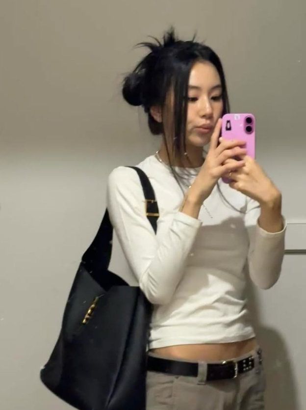 채영은 가방 색깔에 맞춰 볼드하면서도 감각적인 벨트로 포인트를 줬다. 여기에 ‘로우 라이즈(하의를 골반까지 내려입은 룩)’를 연출해 시크하면서도 세련된 분위기를 더했다. 특히 채영은 군살 하나 없이 탄탄한 바디라인을 드러내 감탄을 자아냈다.