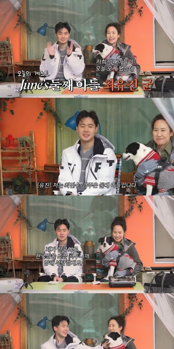 최유진은 "최민수, 강주은 둘째 아들이다. 이름은 최유진이다. 한국어를, 한국말이 조금 서투니까 양해 부탁하겠다"라며 수줍게 자신을 소개했다.