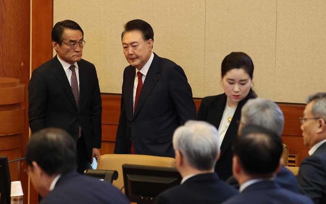윤석열 대통령이 13일 서울 종로구 헌법재판소에서 열린 탄핵심판 8차 변론에 출석하고 있다. / 뉴스1
