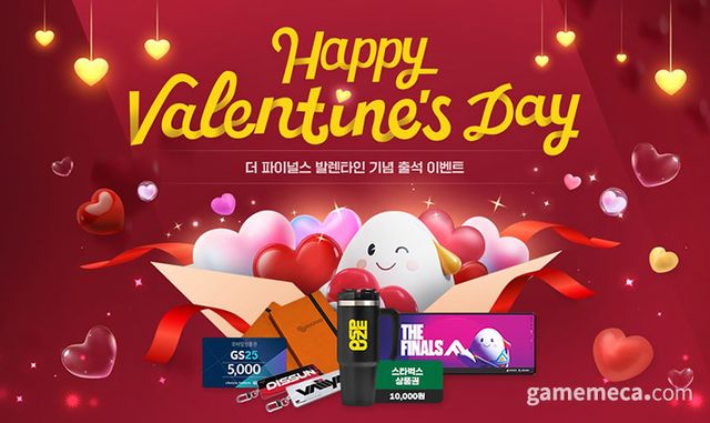 또, 21일까지 밸런타인데이 기념 출석 이벤트를 한다. 기간 내 5일간 더 파이널스 공식 홈페이지에서 출석 버튼을 누르면 Mariachi 무기 스킨, 총기 장식품 아이템을 지급하며, 마지막 5회차 보상으로는 더 파이널스 장패드, OSPUZE 텀블러, 바이야 키링, GS25와 스타벅스 상품권 등 여러 경품 중 1종을 증정한다.