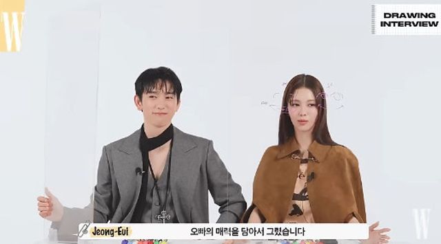 영상에선 드라마 ‘마녀’에서 호흡을 맞추는 박진영과 노정의가 질문에 그림을 그리며 답하는 모습이 담겼다. 서로의 첫인상과 현인상에 대해 노정의는 “오빠를 처음 봤을 때 눈이 엄청 크고 정말 반듯한 청년의 이미지였다면 현인상은 웃는 모습이 가장 크다”라고 밝혔다.