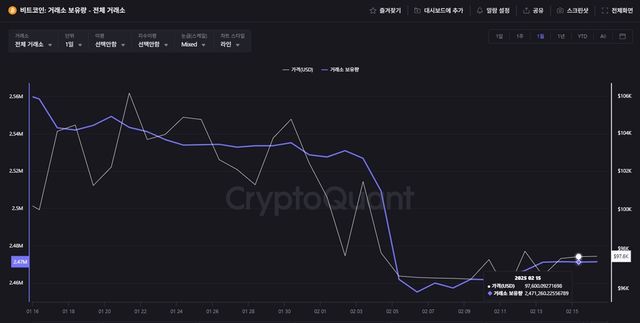 비트코인 거래소 보유량 변화 추이 / 크립토퀀트