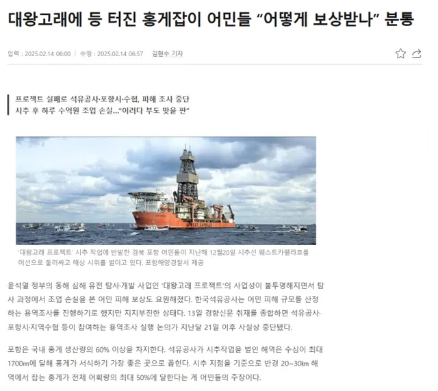 대왕고래에 등 터진 홍게잡이 어민들 “어떻게 보상받나” 분통