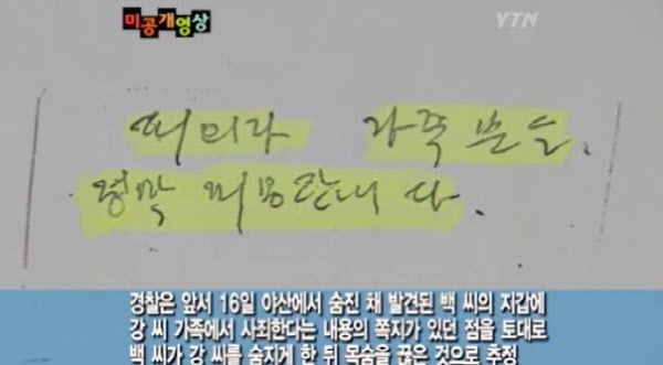 B씨는 자신의 수첩에 “요양원에 있는 어머니와 10여년 헤어진 딸에게 미안하다”는 말과 함께 “집 주인인 A씨 가족에게도 죄송하다”는 내용의 메모를 남겼다.