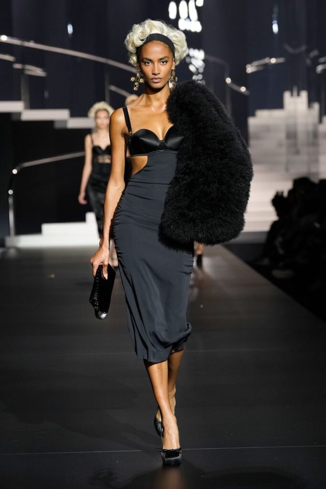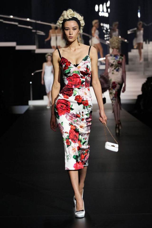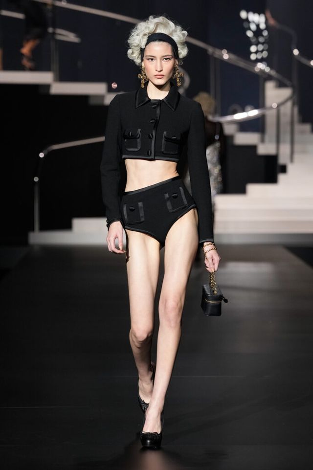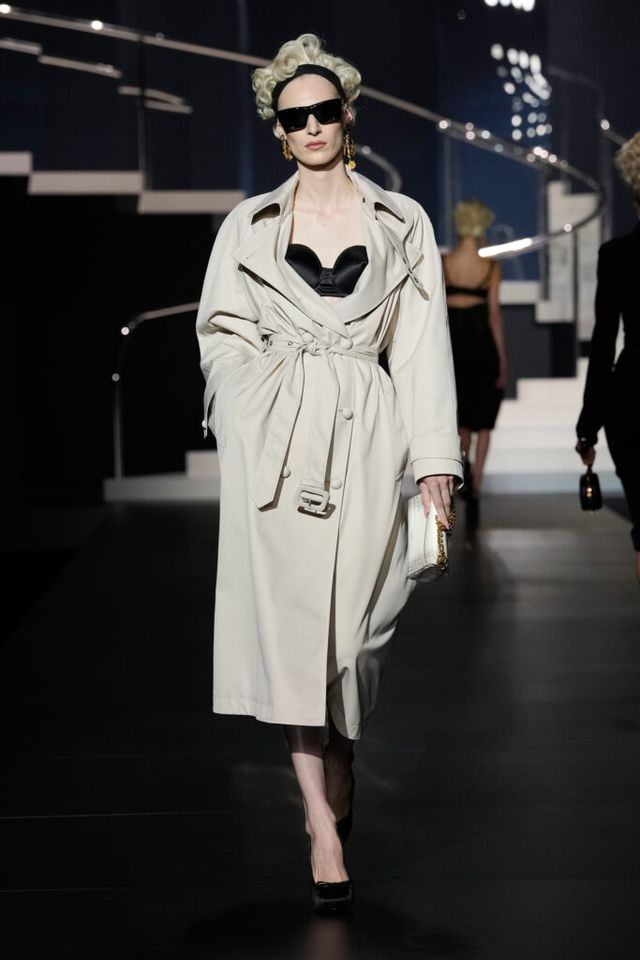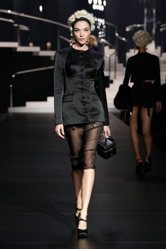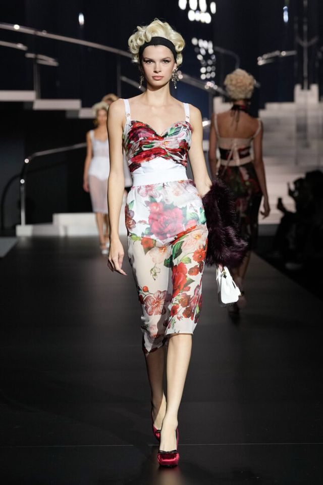 NOTE 돌체앤가바나는 영화 역사에 나타난 다양한 여성상을 하우스만의 스타일로 재해석했다. 이를 위해 드라마틱한 금발 가발, 고전영화에 등장할 법한 시대적인 옷과 코르셋 드레스, 1980년대 배우들이 즐겨 들던 코스메틱 백 등이 하우스만의 코드로 변주돼 런웨이에 올랐다. 란제리 룩의 반복된 등장은 필요 이상으로 외설적이라는 인상을 남기며 아쉬움을 자아냈지만, 섬세한 디테일과 정교한 테일러링은 ‘이탤리언 글램 룩의 정수’라는 표현이 아깝지 않을 정도로 완성도 높았다.