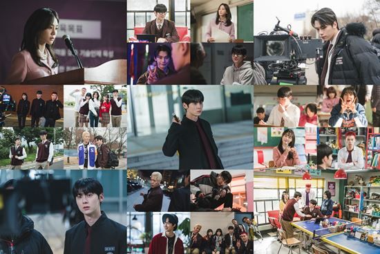 여기에 ‘연서 3철’의 우두머리로 피한울의 호위무사를 자처했지만, 스터디그룹의 도움으로 뭉클한 변화를 맞은 ‘김순철’ 역의 주연우, 비밀을 간직한 채 스터디그룹 주변을 맴도는 ‘박건엽’ 역의 홍민기, 피한울의 최측근이자 장난기 어린 말투에 숨겨진 악랄함으로 긴장감을 높인 ‘마민환’ 역의 백서후까지 얽히고설킨 유성공고 서열 싸움을 책임진 배우들이 극의 흥미를 높였다. 촬영이 쉬는 시간 포착된 화기애애한 단체 사진은 보는 이들을 미소 짓게 한다.