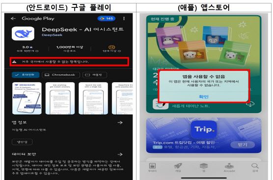 이번 조치로 딥시크 앱의 신규 다운로드는 제한되지만, 기존 이용자는 계속 이용할 수 있다. 모바일 앱 외에 PC 웹브라우저 접속을 통한 이용도 가능하다.
