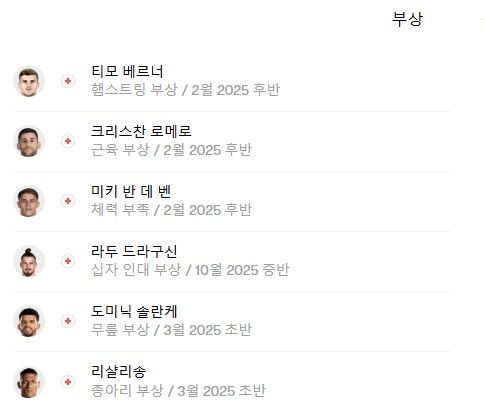 토트넘은 맨유전 티모 베르너, 크리스티안 로메로, 미키 판 더 펜, 라두 드리구신, 도미닉 솔란케, 히샬리송까지 총 6명의 부상자가 확인됐다. 지난 빌라와 경기전보다 확실히 줄어들었다. 여기에서 손흥민, 벤탄쿠르, 단소를 추가하면 9명 이상으로 다시 1군에 상당한 전력 이탈이 생긴다.