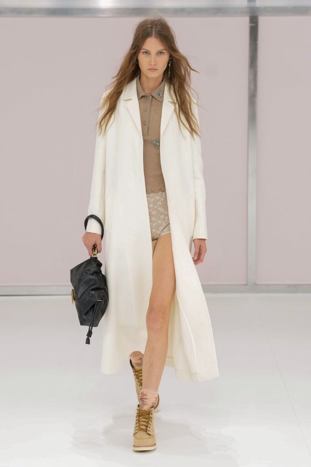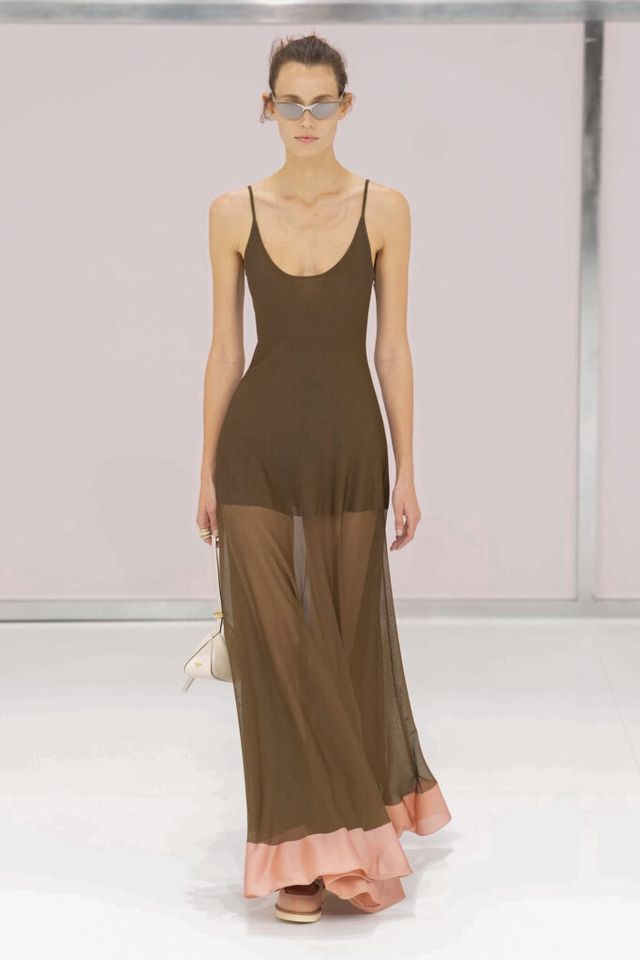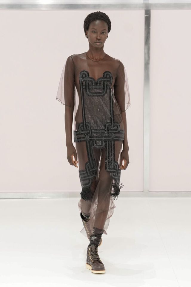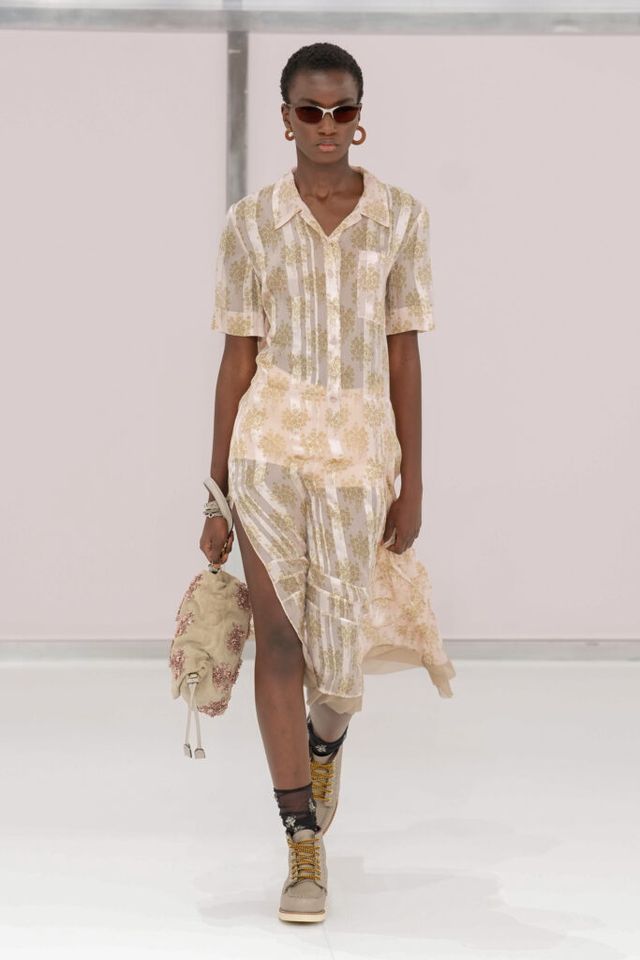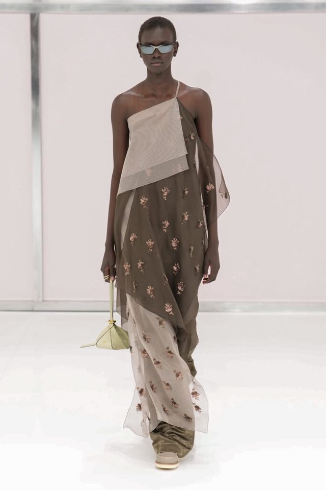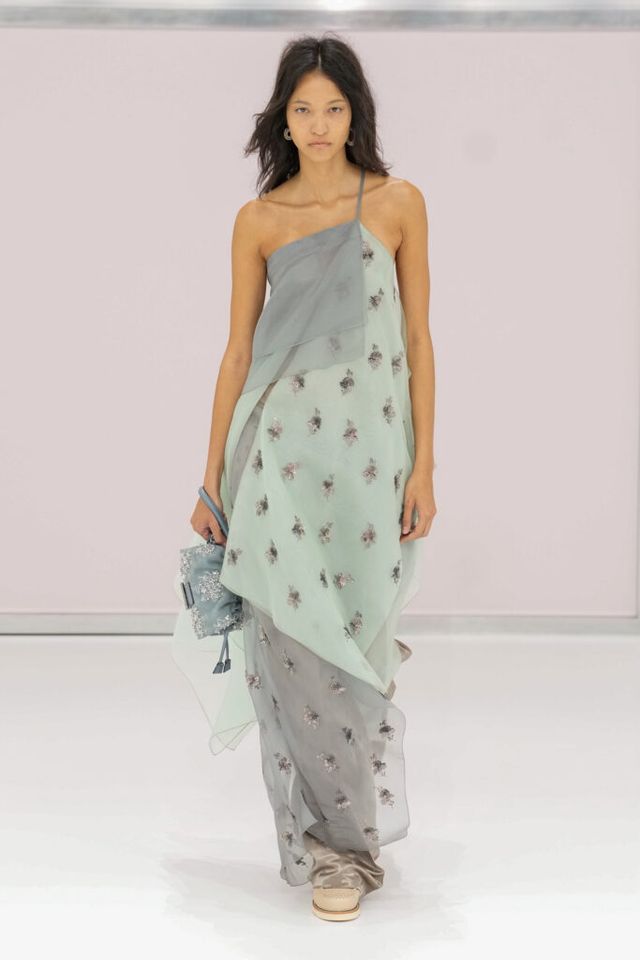NOTE 킴 존스는 하우스 설립 100주년을 맞아 브랜드가 탄생한 1925년의 역사를 살폈다. 그가 오랜 탐구 끝에 찾아낸 것은 그해에 버지니아 울프의 역작 <댈러웨이 부인>과 F. 스콧 피츠제럴드의 <위대한 개츠비>가 출간되었다는 사실이다. 그는 당시의 디자인과 장식, 사상 전반에 지금까지도 유효한 모더니즘이 깃들어 있다고 보고 그 모든 것을 아우르는 컬렉션을 구상했다. 파동 치는 댈러웨이 부인의 마음을 대변하듯 넘실거리는 드레스와 <위대한 개츠비>의 등장인물들이 입었을 법한 라운지 웨어 스타일의 컬렉션 피스들은 하나의 주제에 지나치게 몰두하는 대신 시대에 대한 실마리만을 던지며 관객에게 생각할 여지를 남겼다.