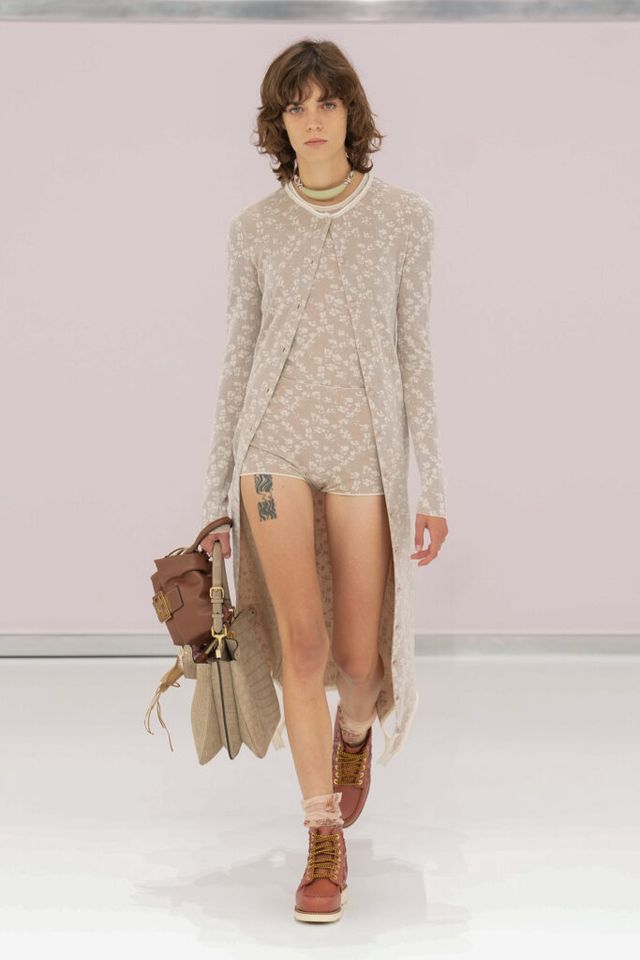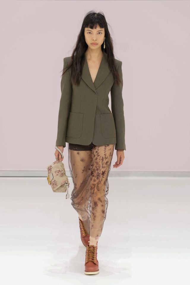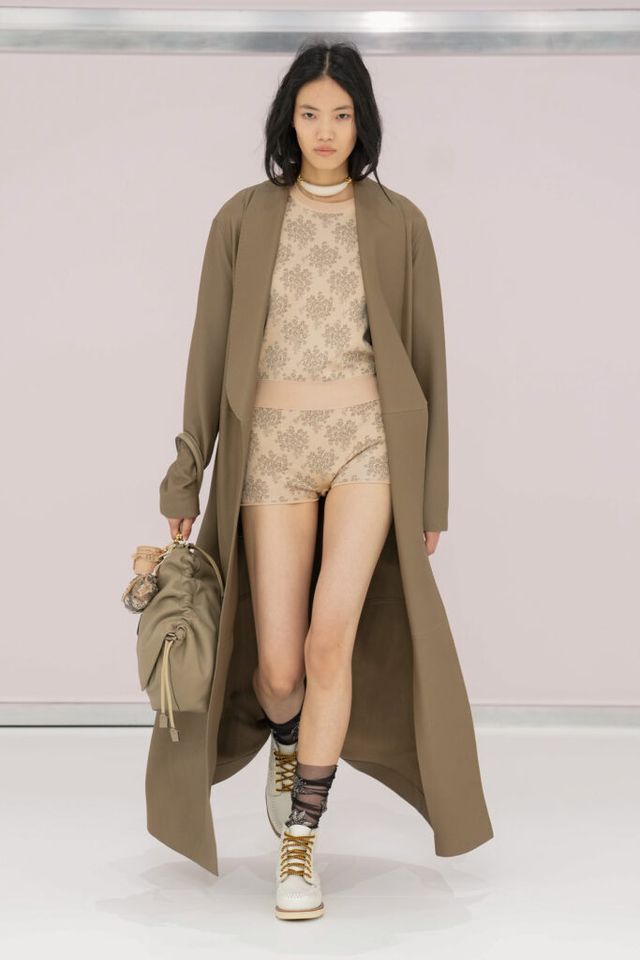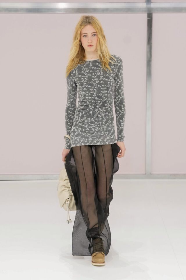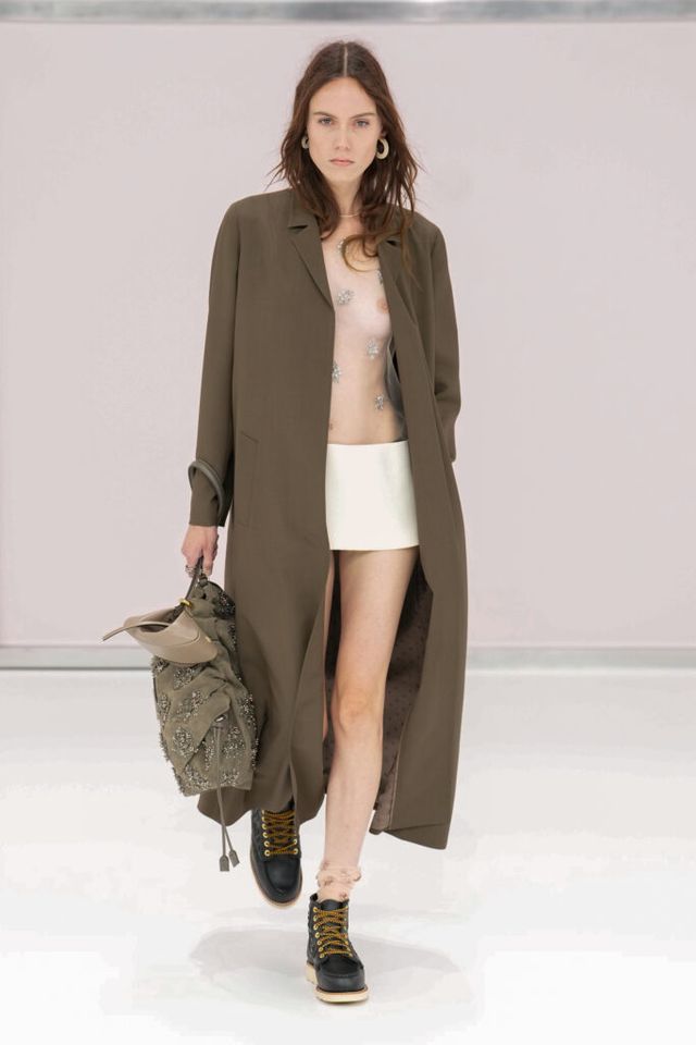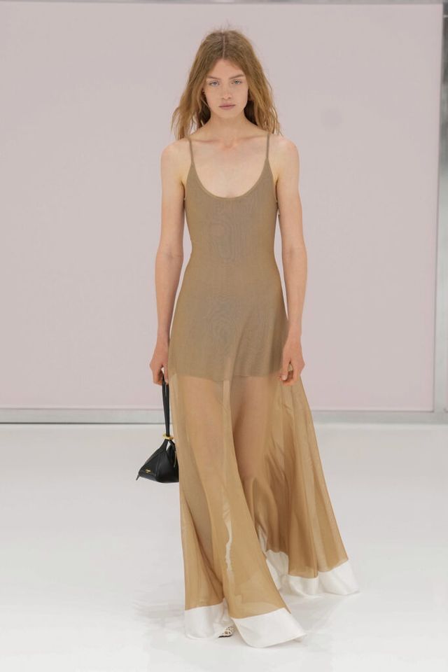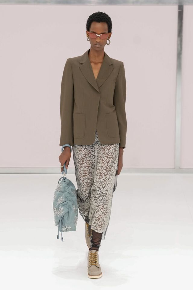 NOTE 킴 존스는 하우스 설립 100주년을 맞아 브랜드가 탄생한 1925년의 역사를 살폈다. 그가 오랜 탐구 끝에 찾아낸 것은 그해에 버지니아 울프의 역작 <댈러웨이 부인>과 F. 스콧 피츠제럴드의 <위대한 개츠비>가 출간되었다는 사실이다. 그는 당시의 디자인과 장식, 사상 전반에 지금까지도 유효한 모더니즘이 깃들어 있다고 보고 그 모든 것을 아우르는 컬렉션을 구상했다. 파동 치는 댈러웨이 부인의 마음을 대변하듯 넘실거리는 드레스와 <위대한 개츠비>의 등장인물들이 입었을 법한 라운지 웨어 스타일의 컬렉션 피스들은 하나의 주제에 지나치게 몰두하는 대신 시대에 대한 실마리만을 던지며 관객에게 생각할 여지를 남겼다.