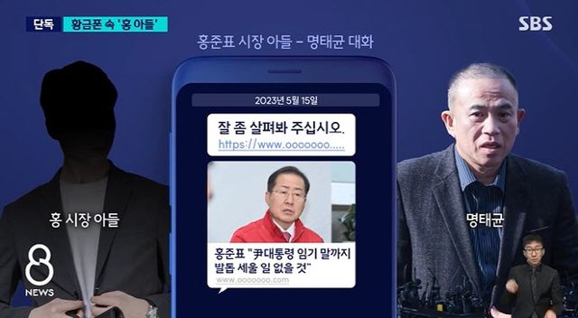 전날 SBS는 검찰이 명씨의 황금폰 포렌식 과정에서 확보한 명씨와 홍 시장 아들의 카카오톡 메시지 내용을 입수해 보도했다.
