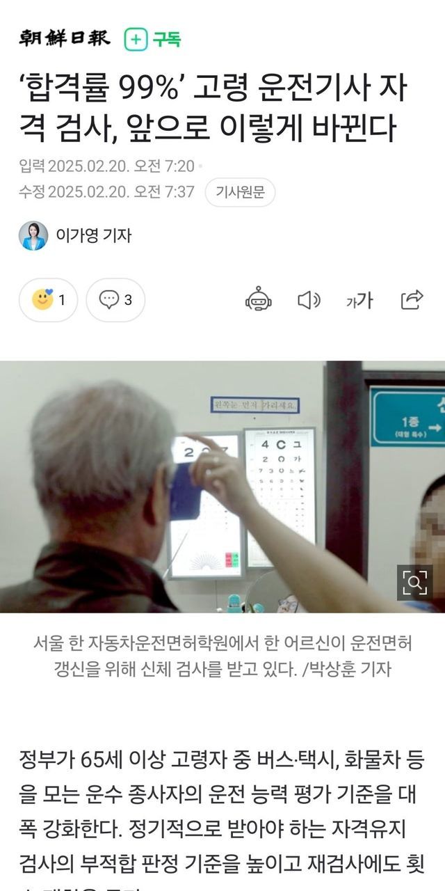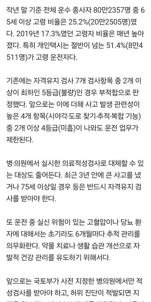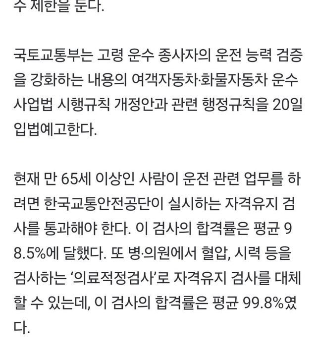 ‘합격률 99%’ 고령 운전기사 자격 검사 바뀐다