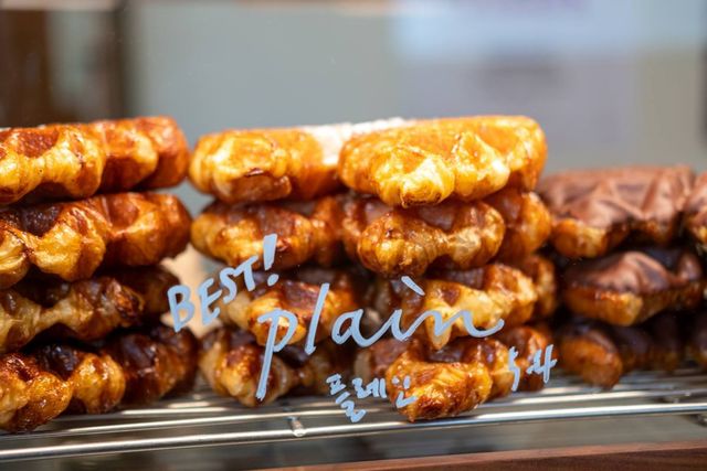 기존의 크로와상은 오븐에 구워야 했지만, 크로와상 반죽을 와플 기계에 눌러 구우면서 바삭한 식감을 더한 것이 크로플의 핵심이다.