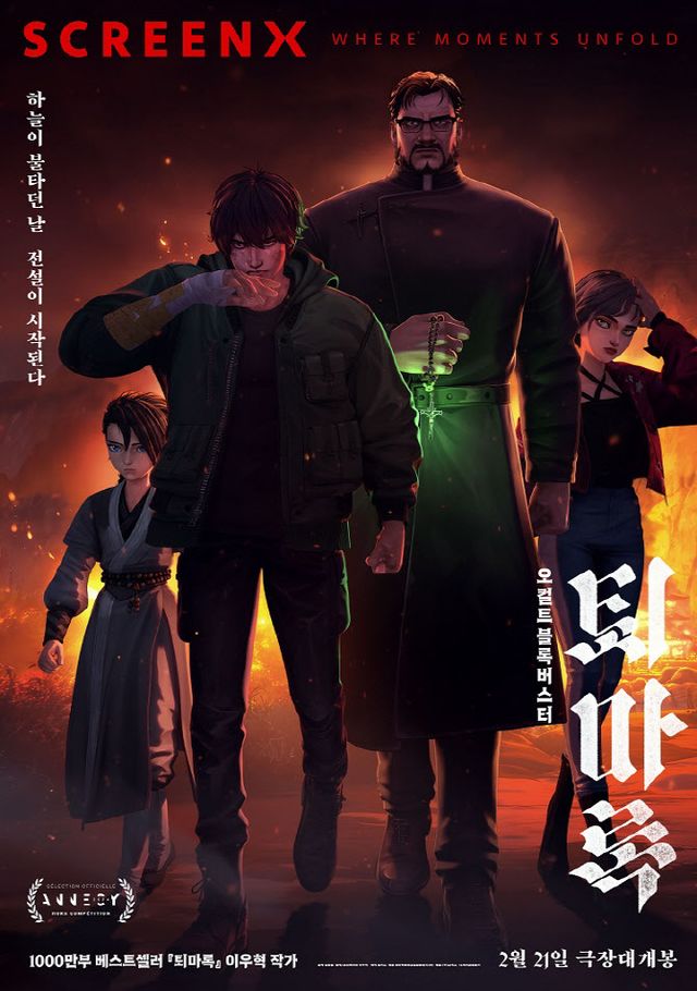영화 ‘퇴마록’은 1000만 부 이상 판매된 베스트셀러 ‘퇴마록’을 원작으로 한 애니메이션으로 특별한 능력을 가진 퇴마사들이 절대 악(惡)에 맞서는 대서사의 시작을 담은 이야기다. CGV에서는 2D를 비롯해 스크린X, 4DX, 울트라 4DX로 상영해 오감으로 영화를 즐길 수 있다.