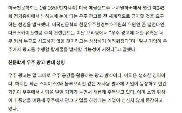 이제 밤하늘에서 별대신 대형 회사들의 광고를 봐야하는 시대가 올지도 모른다