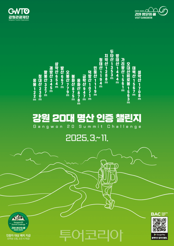 이러한 흥행 성공 속 강원특별자치도와 강원관광재이 ‘강원 20대 명산 인증 챌린지’를 오는 3월부터 11월까지 운영한다.