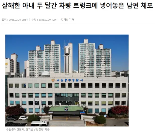 살해한 아내 두 달간 차량 트렁크에 넣어놓은 남편 체포