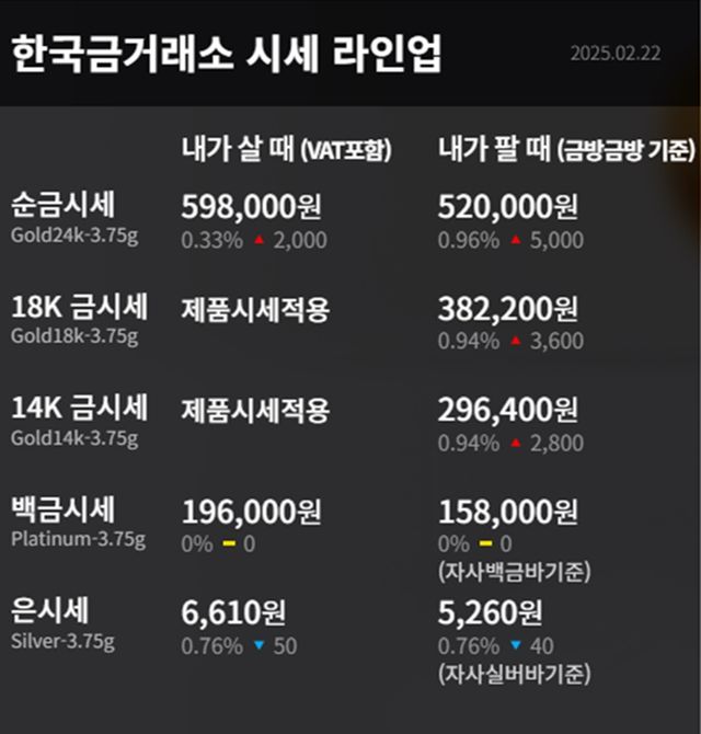 순금(24K) : 매입가 59만 8000원 / 매도가 52만 원