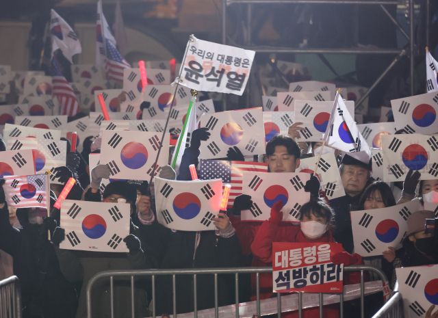이의 연장에서 드디어 이 세력이 폭력성을 보이기 시작한 건 참으로 우려스럽다. 태극기로 상징되는 세력은 윤석열의 계엄 행위가 위헌 불법이었는지 여부 따위는 관심이 없다. 윤 대통령을 극우의 구심으로 생각하고, 윤 대통령 스스로도 자신이 탄핵돼 파면되더라도 극우의 중심이 되겠다는 망상과 자기최면에 갇혀 있는지도 모를 일이다. 극우와 윤석열이 서로의 필요에 의해 결합하여 상호악순환의 구조를 끊임없이 확대 생산하는 폭력적 구조가 지금의 상황이다.