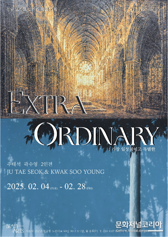 문화저널코리아 오형석 기자 | 청담 보자르갤러리(대표 허성미)는 주태석·곽수영 2인전 'Extra Ordinary: 가장 일상적이고 특별한'을 개최한다.