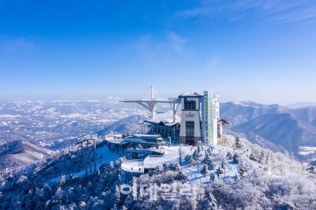 모나 용평이 자리한 발왕산에 오르면 눈꽃이 가득한 나무들과 함께 투명한 햇빛이 반사되어 더욱 아름다운 풍경을 감상할 수 있다.