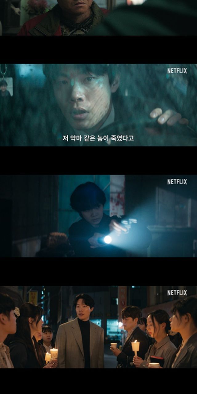 넷플릭스 영화 ‘계시록’은 실종 사건의 범인을 단죄하는 것이 신의 계시라 믿는 목사와, 죽은 동생의 환영에 시달리는 실종 사건 담당 형사가 각자의 믿음을 쫓으며 벌어지는 이야기를 그린다. 인간 본능에 대한 날카로운 화두를 던지며, 늘 새로운 이야기를 펼쳐냈던 연상호 감독과 최규석 작가가 함께한 영화 ‘계시록’은 ‘로마’, ‘그래비티’를 연출한 거장 알폰소 쿠아론이 이그제큐티브 프로듀서(Executive Producer)로 참여해 화제를 모은 바 있다.
