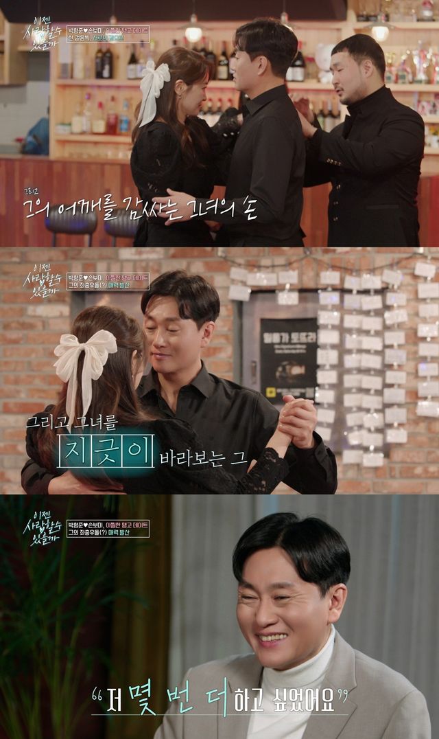 서로의 연애 스타일을 더 깊이 알아가는 가운데, 평소 자신의 이상형을 털어놓는 손보미에 박형준은 “나도 그 조건이 아닌가?”라며 기대를 내비치고, 손보미도 “이상형에 가까우신 분이에요”라며 핑크빛 분위기를 풍긴다.
