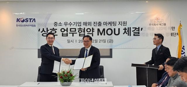 [파이낸셜경제=김예빈 기자] 한국중소벤처무역협회(KOSTA)는 지난 2월 22일 ㈜에그풀과 중소기업의 해외 시장 개척을 위한 마케팅 지원 업무협약(MOU)을 체결했다. 이번 협약을 통해 에그풀이 운영하는 광고 플랫폼 ‘기프트애드’를 활용하여 효과적인 글로벌 마케팅을 진행할 수 있을 것으로 기대된다.