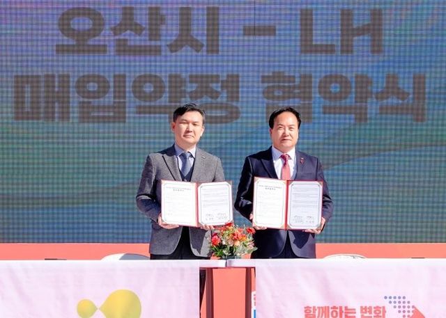 [와이뉴스] 오산시가 24일 오후 LH(한국토지주택공사)와 2천500세대 규모의 청년·신혼부부를 위한 매입약정 임대주택의 조기 착공 등의 내용을 담은 업무협약(MOU)을 체결했다.