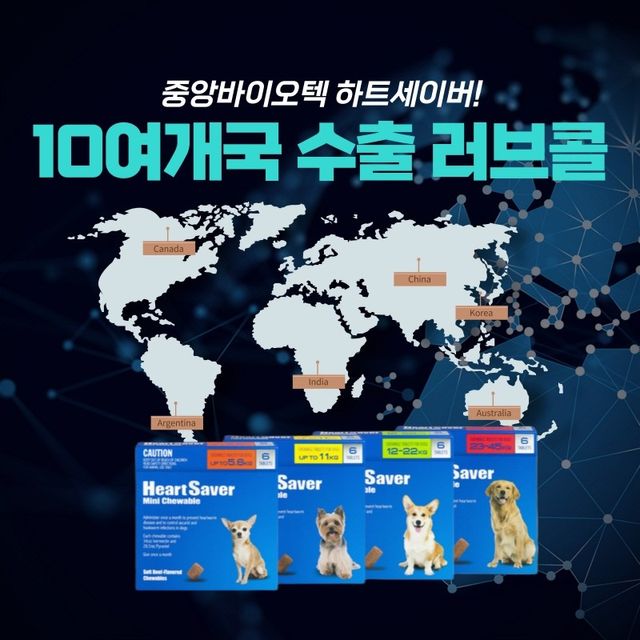 대한민국 대표 동물용의약품 제조기업 중앙바이오텍의 강아지 심장사상충예방약 하트세이버가 대만, 베트남, 말레이시아 등 10여개 국가로부터 수출 러브콜이 이어지고 있다고 전했다.