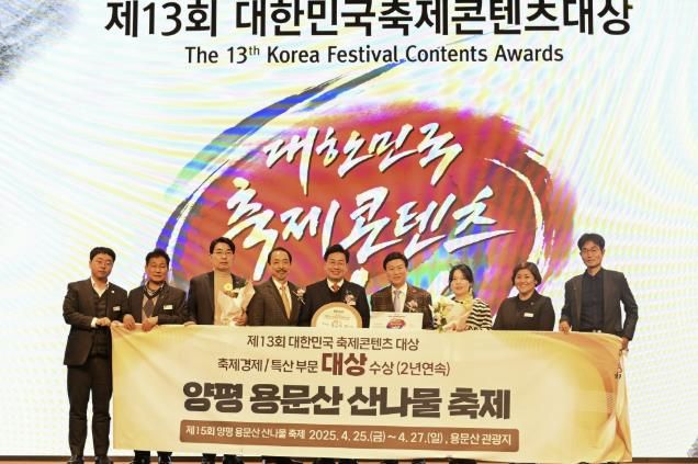 [파이낸셜경제=김영란 기자] 양평군은 25일 (사)한국축제콘텐츠협회가 주최한 ‘제13회 대한민국 축제콘텐츠대상’ 시상식에서 양평군의 대표 축제인 ‘양평 용문산 산나물축제’가 축제 경제 부문 대상을 수상했다고 밝혔다. 지난해에 이어 2년 연속 수상의 영예를 안으며, 축제의 경제적 기여와 경쟁력을 입증하는 계기가 됐다.