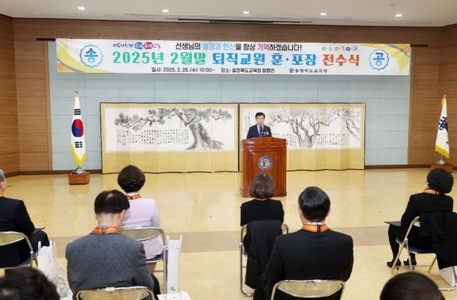 [파이낸셜경제=김영란 기자] 충청북도교육청이 26일 오전, 도교육청 화합관에서 2월말 퇴직교원을 대상으로 훈 · 포장 전수식을 가졌다.