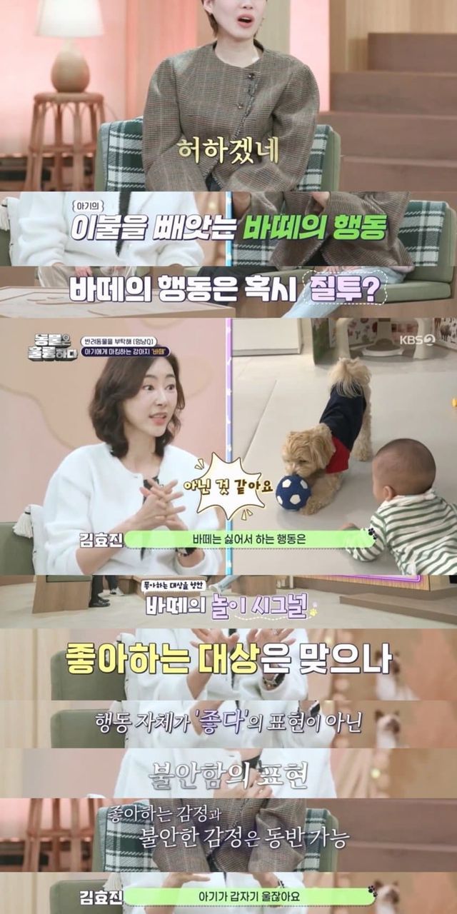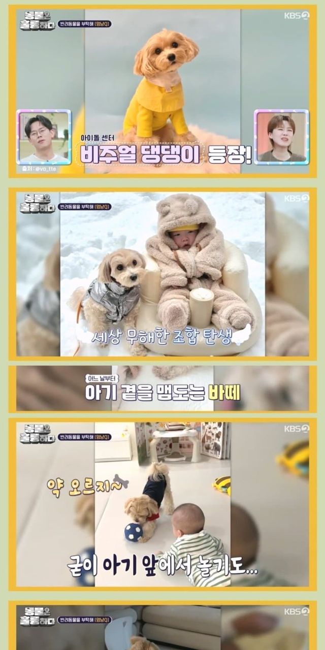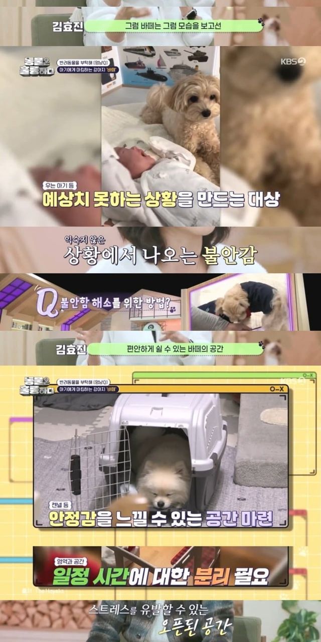 평소 기분 좋으면 다리 올리며 건마킹하는데 아기한테도 하기 시작한 강아지