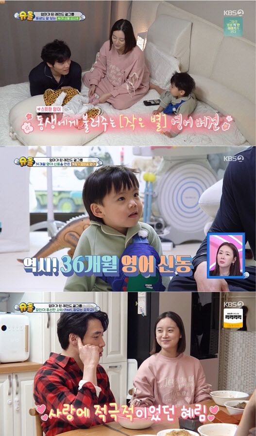 이때 36개월 시우는 동생의 머리를 쓰다듬어 주며 애정 표현을 하고, 어린 시절 엄마에게 배운 영어 동요인 ‘작은 별’을 불러주며 듬직한 형아가 된 모습으로 보는 이들의 미소를 자아냈다.