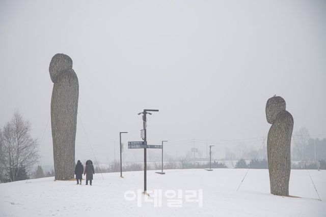 파주 임진각은 한국전쟁의 비극을 고스란히 간직한 곳이다. 하지만 이곳에 ‘임진각 평화누리’ 공원이 조성되면서 평화와 화해의 장소로 탈바꿈했다. 약 2만 명 수용이 가능한 대형 잔디 언덕 주변에는 다양한 작가들의 미술품들이 설치되어 있다. 그중에서도 빙글빙글 돌아가는 수천 개의 바람개비와 대나무로 만든 거대한 목인상이 인상적이다.