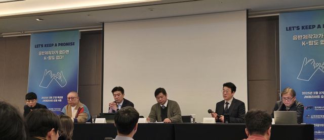 한국음악콘텐츠협회(음콘협), 한국매니지먼트연합(한매연), 한국연예제작자협회(연제협), 한국음악레이블산업협회(음레협), 한국음반산업협회(음산협) 등 대중음악 5개 단체는 27일 서울 반포 JW메리어트호텔에서 ‘음반제작자가 없다면 K-팝도 없다’ 타이틀의 기자회견을 개최하고 템퍼링, 전속계약 논란 등 최근 음악 산업 관련한 다양한 이슈에 대한 이야기를 나눴다.