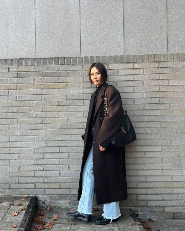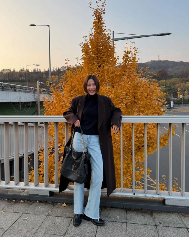 밑단을 러프하게 자른 아이스 플레어 데님 위에 단정한 터틀넥과 코트를 매치한 김나영. 심플 이즈 베스트 라는 말이 절로 떠오르게 하네요.