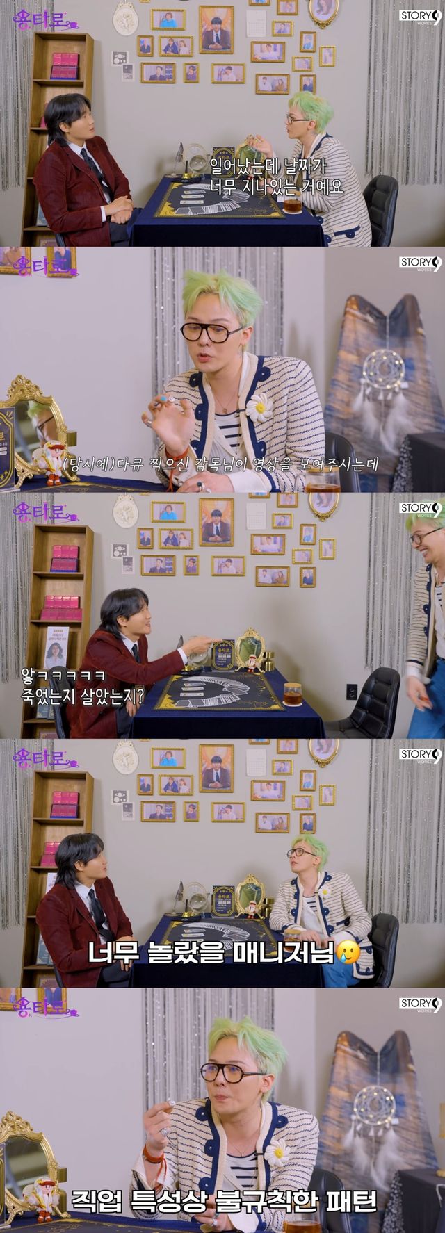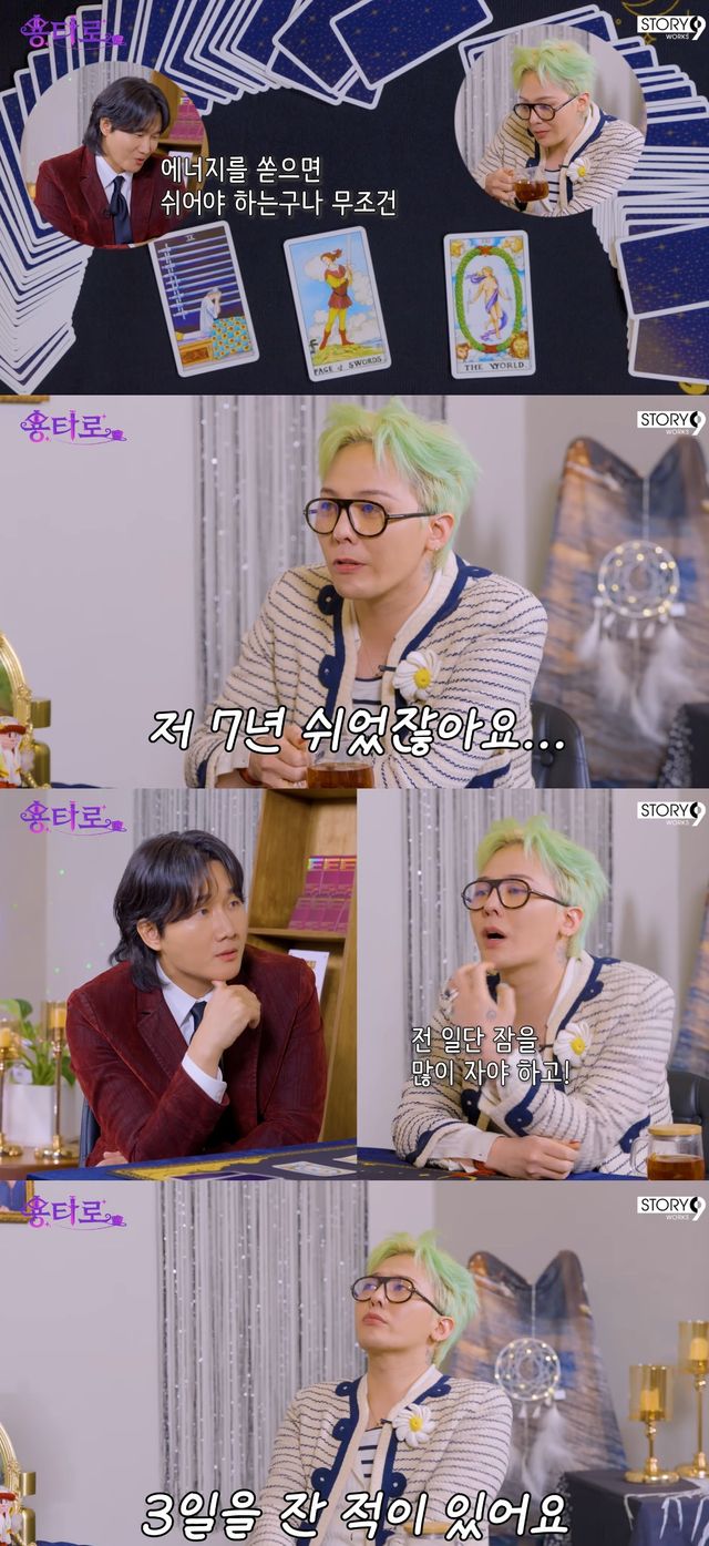 카드를 뽑은 지드래곤은 "에너지를 쏟으면 무조건 쉬어야한다. 그 기간을 충분히 가져야한다"는 이용진의 타로 풀이에 "저 7년 쉬었잖아요"라며 공감을 표했다.