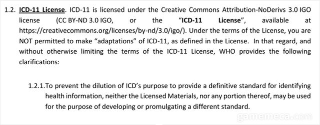 실제로 관련 라이선스에는 '각색' 금지에 대한 내용이 포함되어 있다. 국제질병분류가 건강 정보를 식별하는 확정적인 표준을 제공한다는 목적을 유지하기 위해, 전체 또는 그 일부를 사용해 새로운 표준을 개발하거나 공표하는 것을 금지하고 있다. 이 내용대로라면 2019년부터 6년간 운영된 민관협의체와 게임 질병코드 국내 도입 여부를 결정하는 과정에서 발생한 연구용역 등이 사실상 무의미했다고 볼 수 있다.