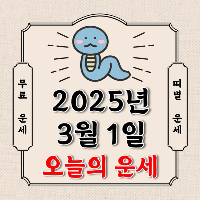 오늘의 운세 2025년 3월 1일 토요일 (음력 2월 2일 / 띠별 운세 / 생년월일 운세)에 대해 알아 보겠습니다.
