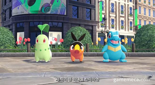 ▲ 이번 타이틀 스타팅 몬스터, 치코리타, 뚜꾸리, 리아코 (사진출처: 포켓몬 프레젠트 갈무리)
