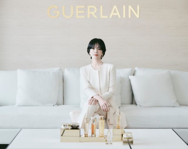 이번 론칭 행사에는 겔랑의 앰버서더인 베우 송혜교도 참석해 자리를 빛내줬습니다. 이날 송혜교는 아베이 로얄 라인의 컬러와 어울리는 따뜻함이 감도는 컬러의 메이크업을 연출해줬는데요. 먼저 ‘빠뤼르 골드 스킨 더블 베일’을 사용해 모공을 커버하고 피붓결을 정돈해 파운데이션을 바르기 전 최적의 상태로 만들어 준 후, ‘빠뤼르 골드 스킨 파운데이션 글로우’ #0C를 사용해 광채가 감도는 피부 표현을 완성했습니다.