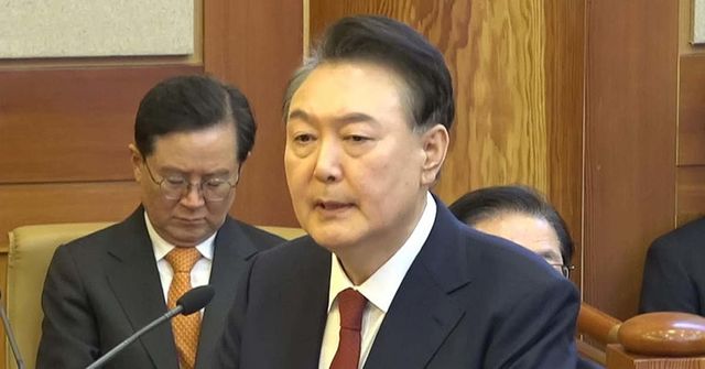 윤석열 대통령이 25일 오후 서울 종로구 헌법재판소에서 열린 대통령 탄핵심판 최종(11차) 변론기일에 출석해 최종의견을 진술하고 있다. / 헌법재판소 제공