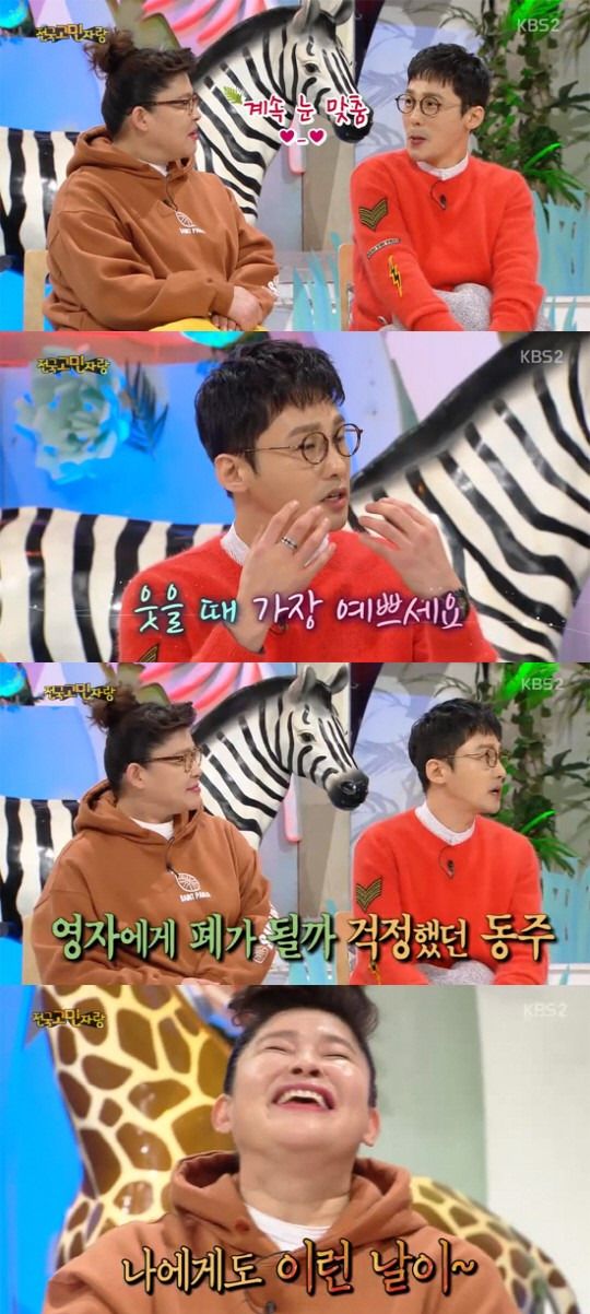 황동주는 이영자를 두고 "웃을 때 가장 예쁘다"며 애정을 드러냈고 이영자 역시 활짝 웃음을 지어 화답했다.