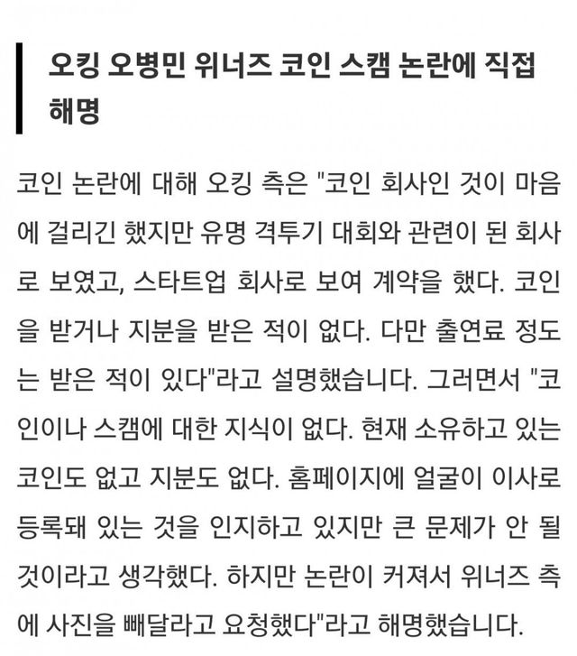 위너즈 코인이라는 스캠의혹 회사의 이사로