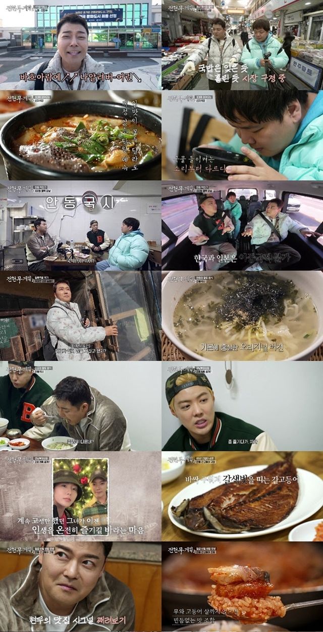 이날 전현무는 안동역 앞에 서서 ‘안동역 앞에서’를 맛깔나게 부르며 37번째 길바닥인 안동 먹트립의 시작을 알렸다. 그러면서 전현무는 “안동 국시는 조금 있다 먹고 국밥 먼저 먹으러 가자”며 ‘전현유(有)계획’으로 찾은 50년 전통의 선지국밥을 먹기 위해 안동 중앙 신시장으로 향했다. 시장 안에서 가마솥 네 개가 끓고 있는 국밥집을 찾은 두 사람은 3대째 선지 만드는 비법을 고수하고 있는 리얼 선지국밥을 영접해 각자 한 그릇씩 ‘뚝딱’하며 만족감을 드러냈다.