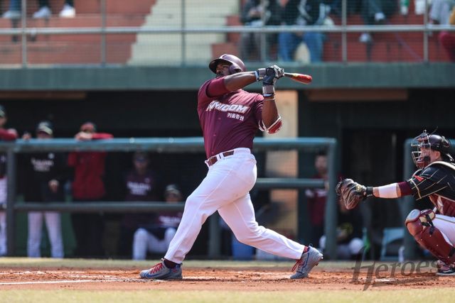 (엑스포츠뉴스 유준상 기자) 키움 히어로즈가 외국인 타자 야시엘 푸이그, 루벤 카디네스의 활약에 힘입어 연습경기에서 승리를 만들었다.