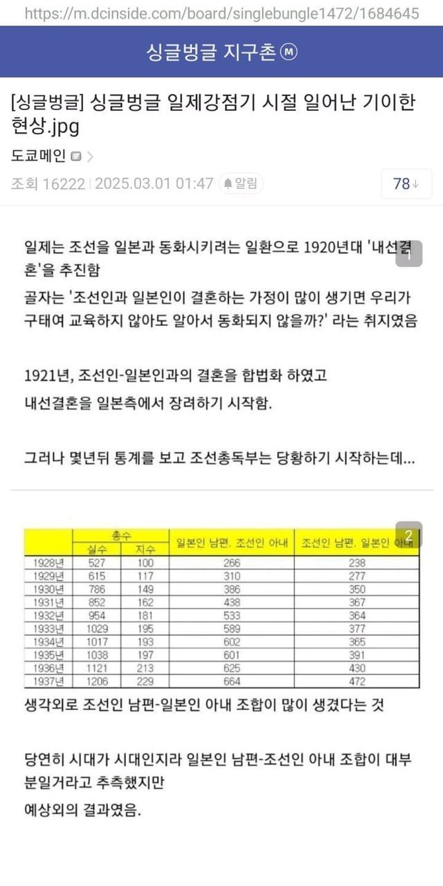 여기서 저 통계로 선동하는점이 드러나는데 바로 조선내 결혼과 일본내 결혼수를 합쳐서만 보여준 것이다