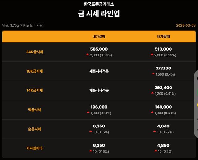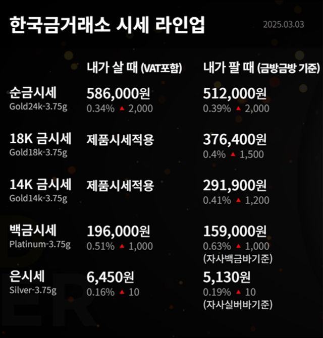 순금(24K) : 매입가 58만 6000원 / 매도가 51만 2000원