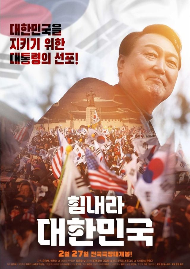 '힘내라 대한민국'은 국민들이 윤석열 대통령의 지난해 12월 3일 비상계엄을 통해 선포 배경에 반국가 세력이 있었다는 사실을 깨닫는 과정을 그린 다큐멘터리 영화다. 예고편에는 윤 대통령의 비상계엄 담화와 지지자들이 거리에서 탄핵 반대 촉구 집회를 하는 모습 등이 담겼다.